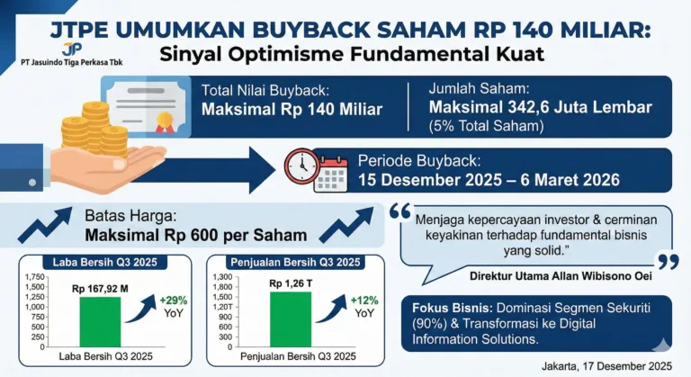 JTPE Umumkan Buyback Saham Rp 140 Miliar, Sinyal Optimisme atas Fundamental Bisnis PT Jasuindo Tiga Perkasa Tbk (JTPE) mengumumkan rencana pembelian kembali (buyback) saham sebagai…