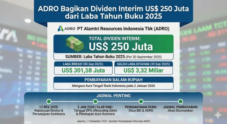 ADRO Akan Bagikan Dividen Interim US$ 250 Juta dari Laba Tahun Buku 2025 Jakarta, 17 Desember 2025 — Emiten energi PT Alamtri Resources Indonesia Tbk…