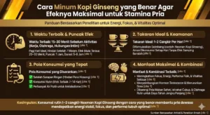 Kopi stamina pria kini menjadi pilihan banyak pria yang ingin menjaga vitalitas dan performa harian. Namun, seperti halnya produk berkafein lainnya, konsumsi kopi stamina harus dilakukan dengan bijak agar manfaatnya maksimal tanpa menimbulkan efek samping.