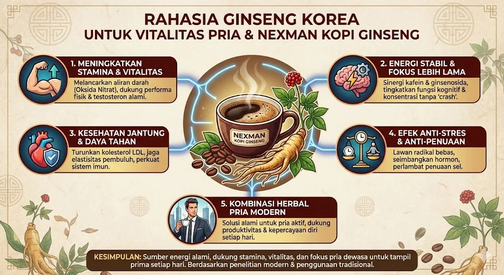 Ginseng Korea bukan sekadar herbal biasa — ini adalah sumber energi alami yang mendukung stamina, vitalitas, dan fokus pria dewasa.
